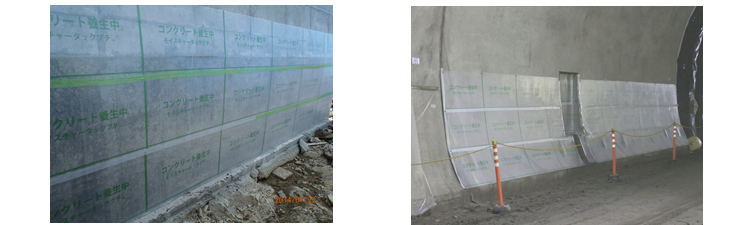 1.湿潤養生:脱型直後からコンクリート表面に貼り付け可能(水分蒸発を大幅に抑制)