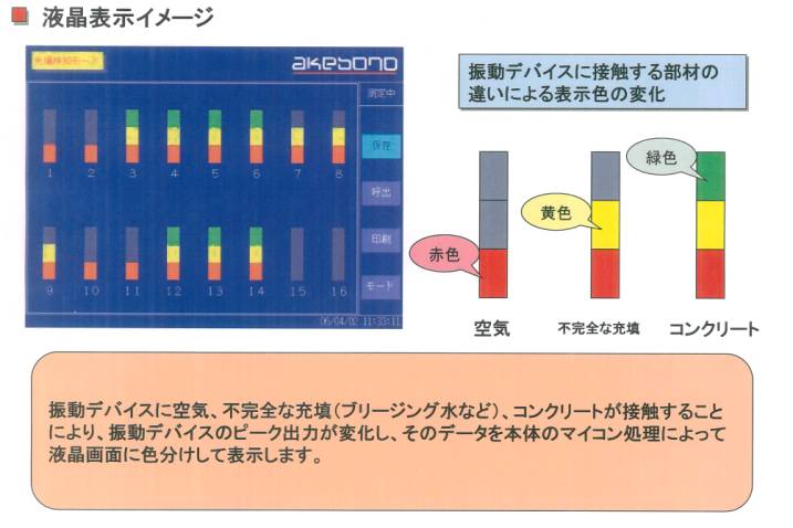 「ジューテンダー」は、曙ブレーキの振動解析技術を応用した、これまでにない高精度のコンクリート充填検知システムです。