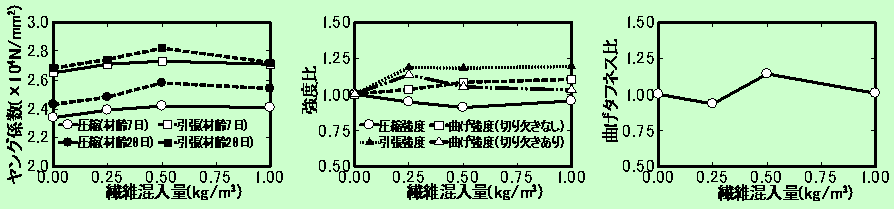 高い引張強度、高い弾性係数、高い付着力、耐アルカリ性、作業が容易(生コン車に丸ごと投入)、スランプロスが少ない