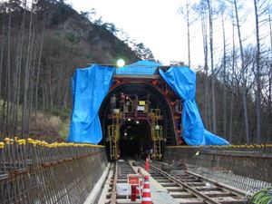 明かり巻きトンネルの施工現場では、アウトセントルの先行脱型が主流となりつつあります。アウトセントルを打設後1日で脱型することで、急速施工が可能になりました。しかし、冬期施工では積算養生温度を考慮し、十分な保温養生を実施する必要があります。