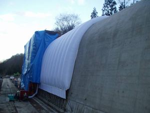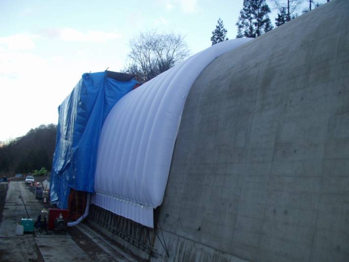 バルーンを用いた保温、湿潤養生(トンネル明かり巻)