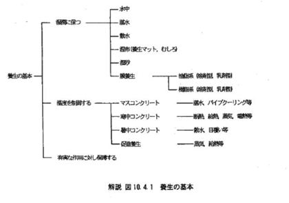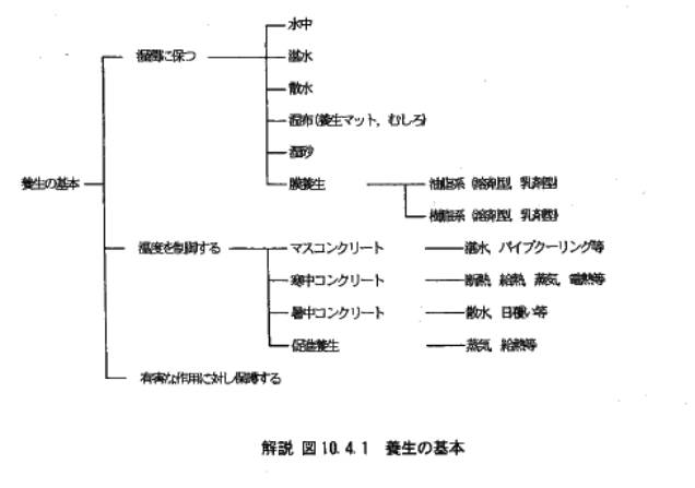 養生の具体的な方法や必要日数は、それぞれの該当する条項に従い、構造物の種類、施工条件、立地条件、環境条件等、個々の状況に応じて定めることが重要です。