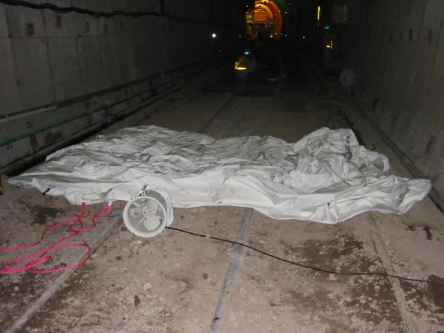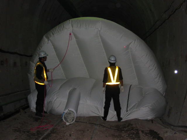 発破用バルーンはトンネル坑内に粉塵が飛散するのを防ぎます!